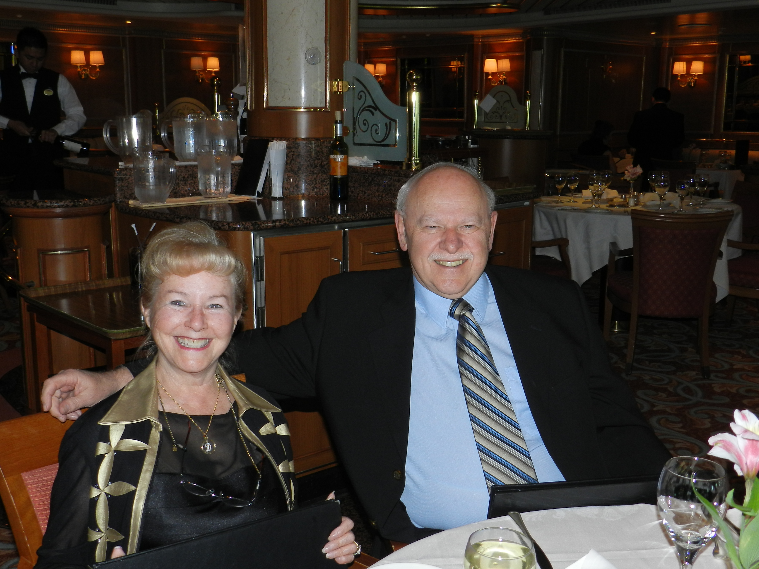 In the dining room of the cruise ship
