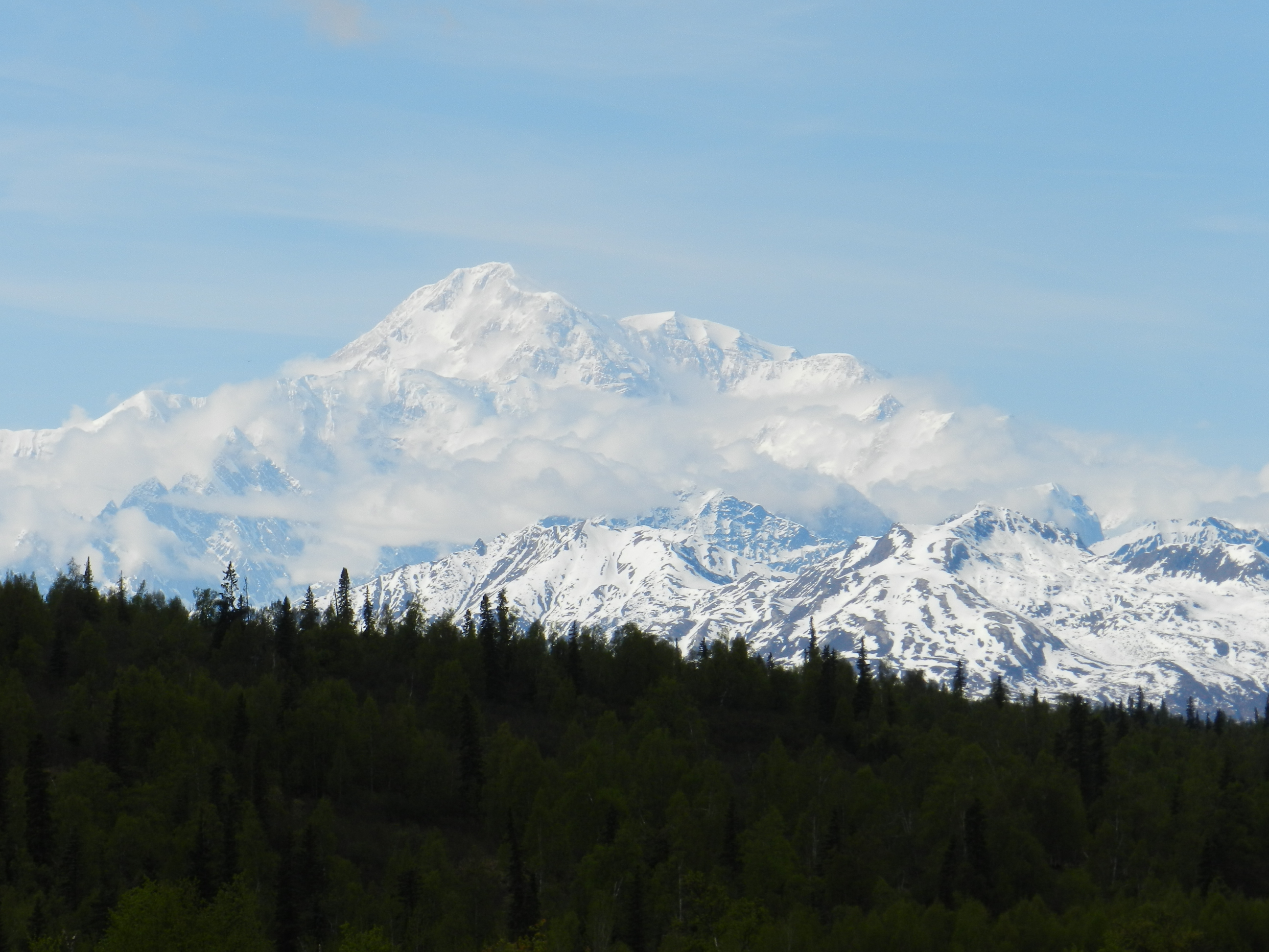 Mount McKinley is large enough to create its own localized weather system, so is usually surrounded by clouds even if the area beyond is clear.